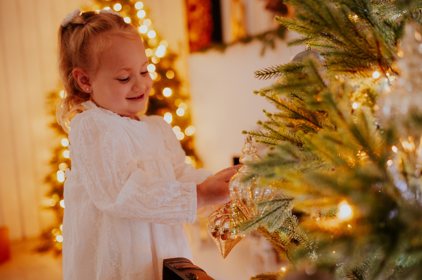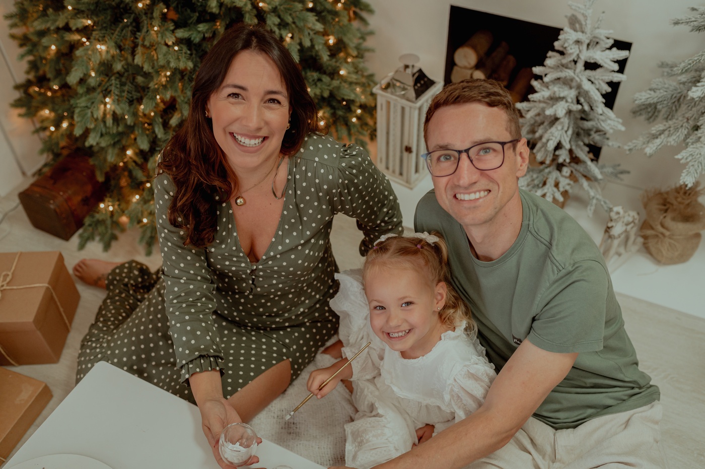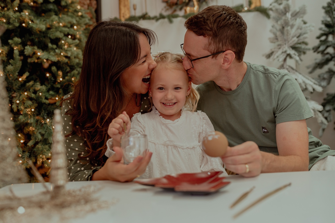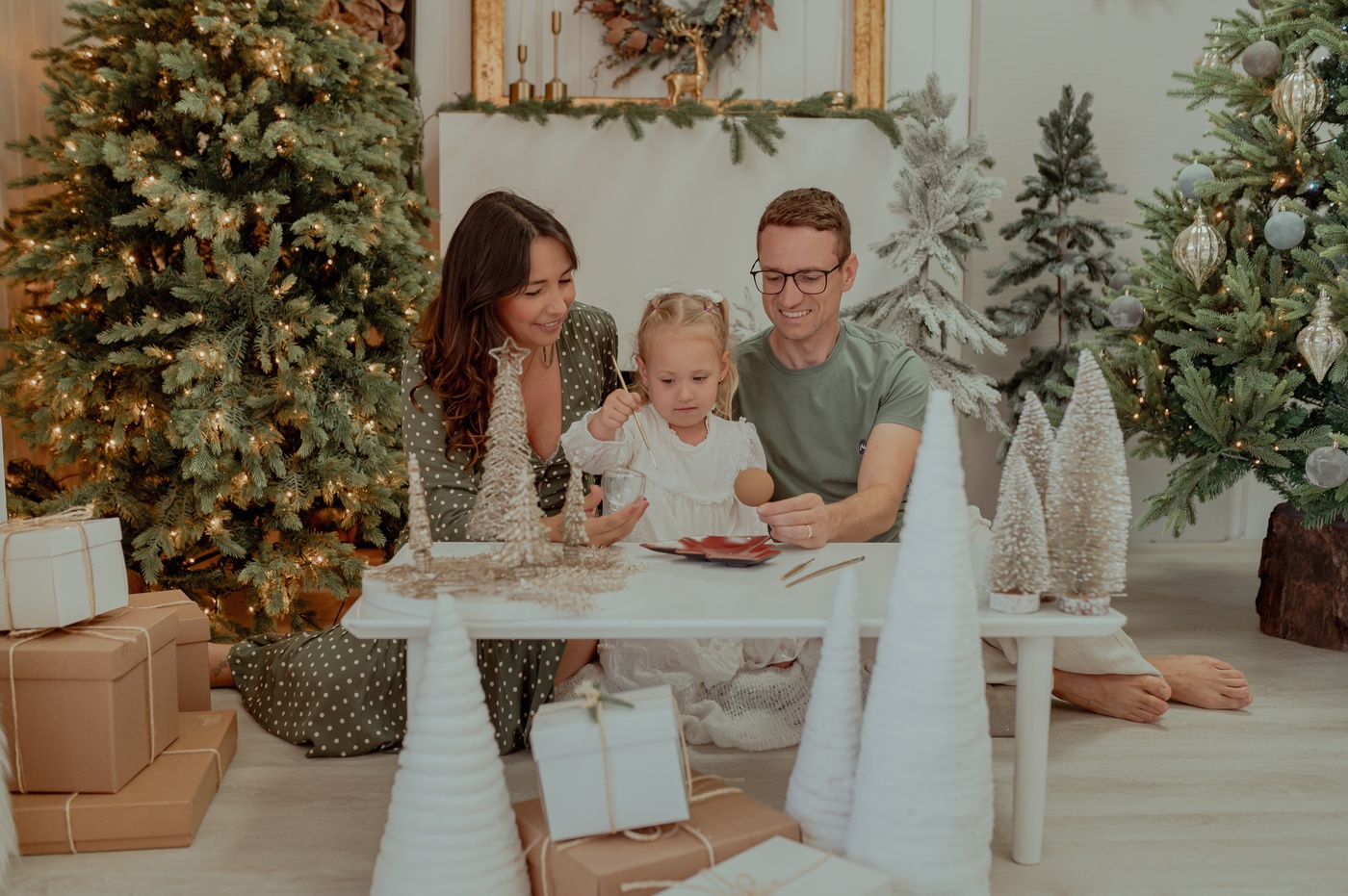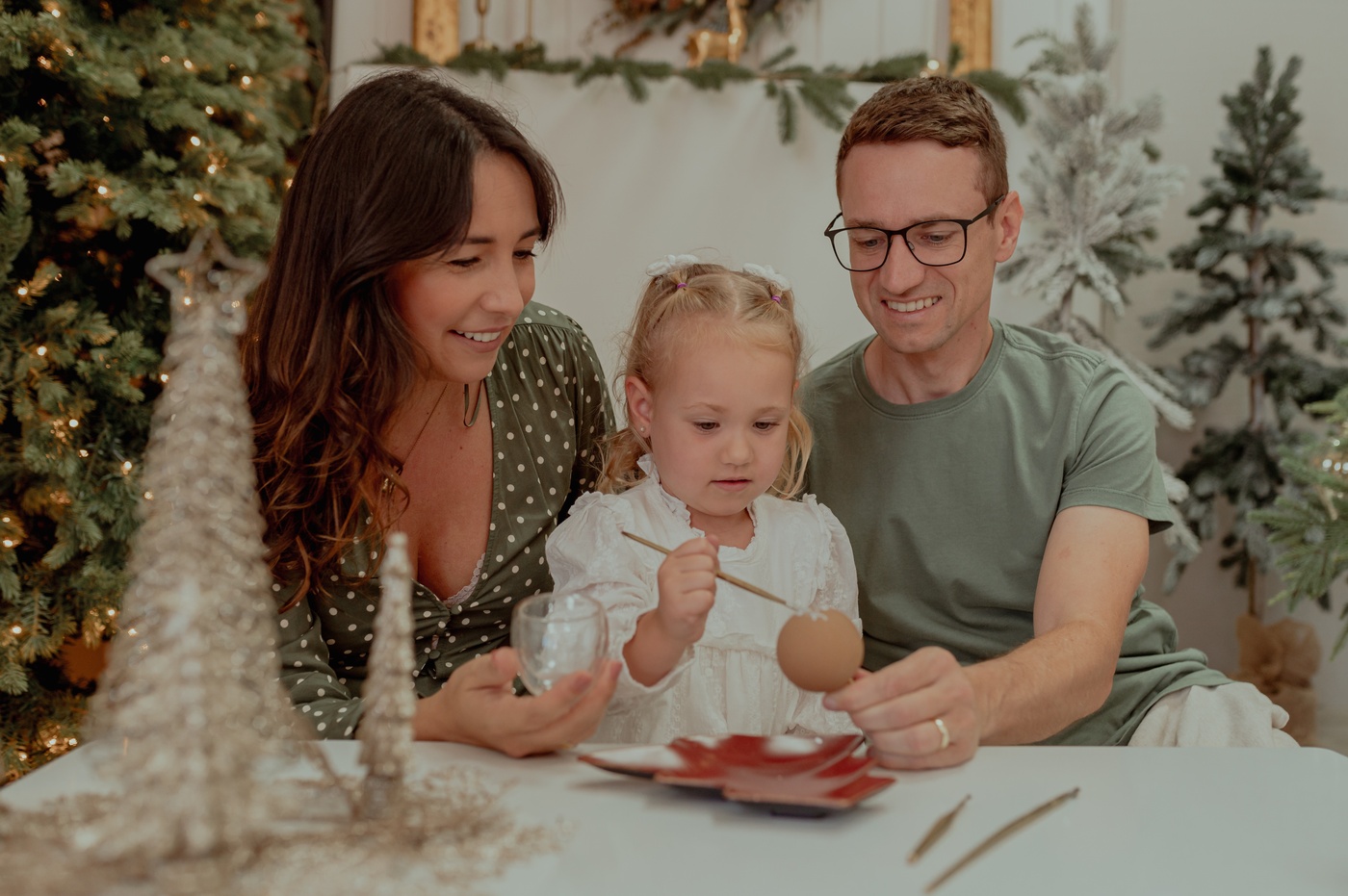 Luíza mergulhou na magia natalina enquanto customizava sua própria bola de Natal, sob o olhar carinhoso e orgulhoso de seus pais.